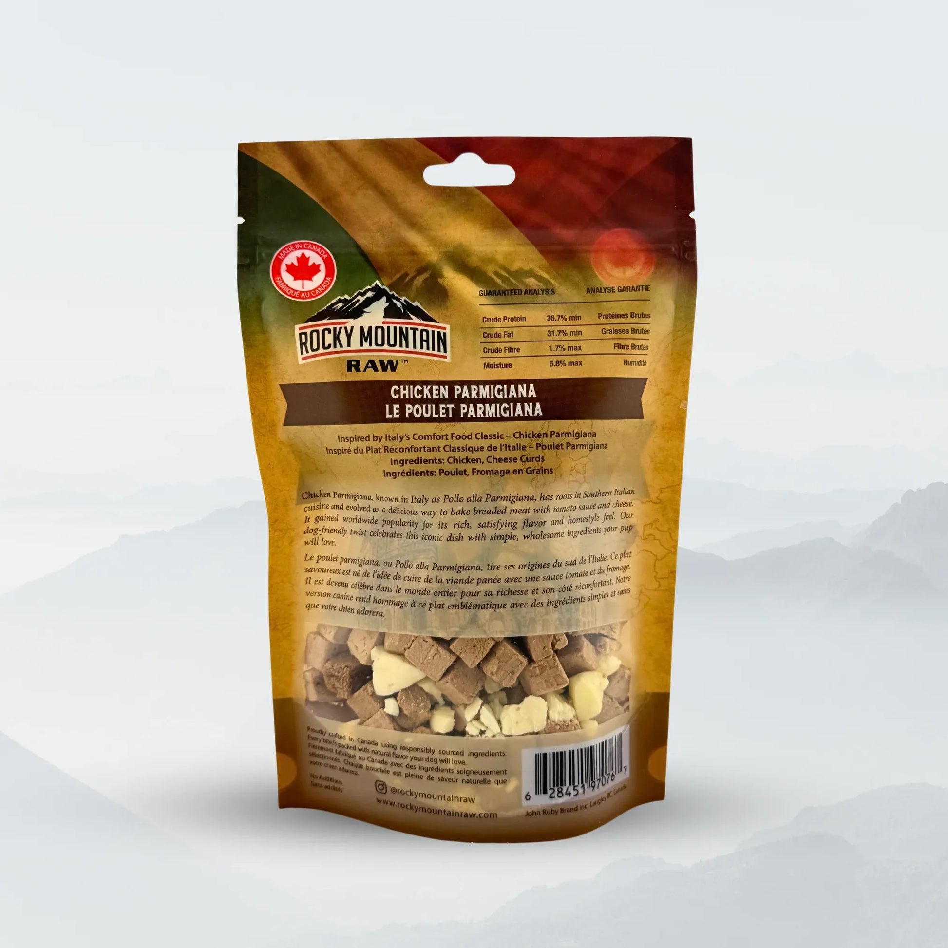 Give your dog a taste of Italy with our Chicken Parmigiana treats! Made with freeze-dried chicken and cheese curds, these gourmet snacks are protein-rich and savory. Ideal for training, snacking, or as a mealtime topper, these Italian-inspired dog treats combine flavor and nutrition in every bite.