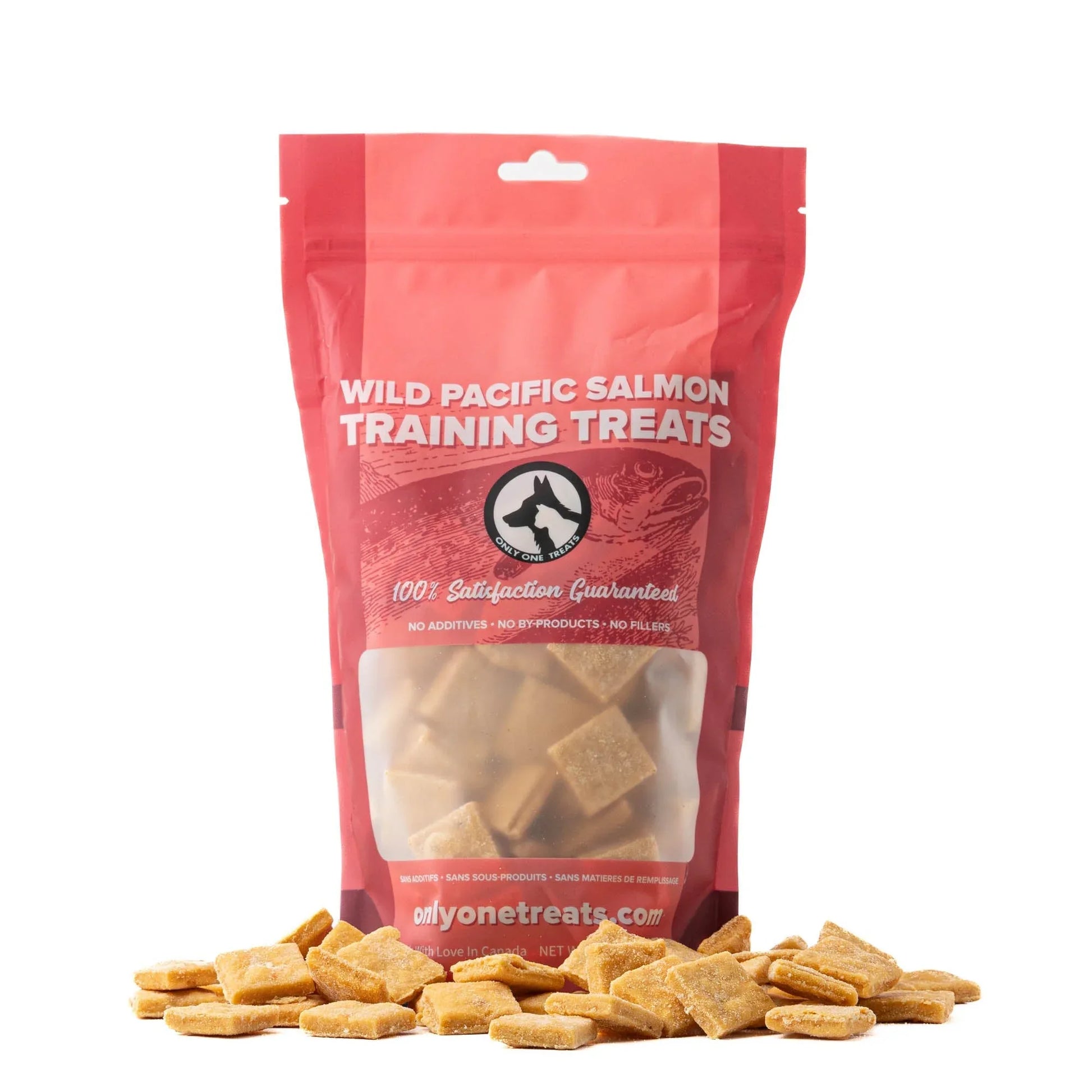 A big bag of bulk salmon dog training treats! Our Wild Pacific Salmon dog training treats are handcrafted with love in Canada. These biscuit style training treats for dogs are tasty and soft, so dogs of any age can enjoy them.